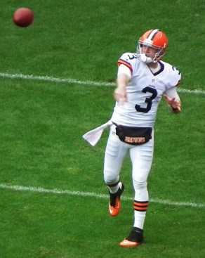 Former Oklahoma State quarterback Brandon Weeden throwing a pass for the NFL’s Cleveland Browns. (Photo via Flickr/Erik Drost)